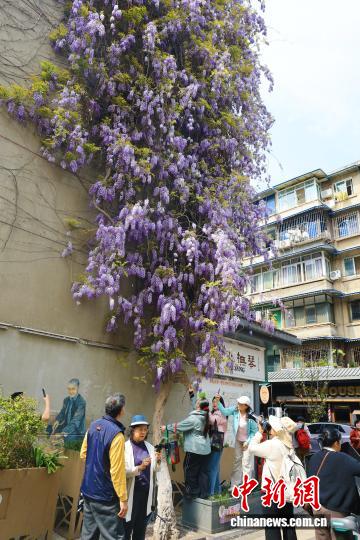 3月24日,4川省成都会操琴道1株紫藤树吸收市平易近挨卡拍摄。中新社记者 弛浪 摄
