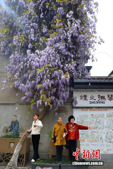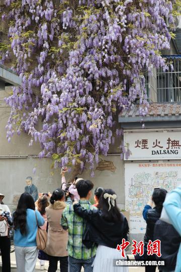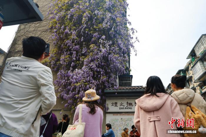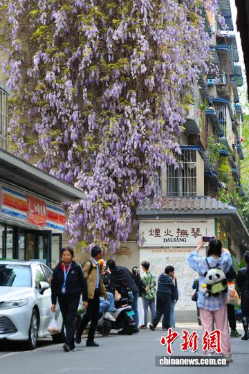 3月24日,4川省成城市操琴道1株紫藤树吸收市平易近挨卡拍摄。中新社记者 弛浪 摄